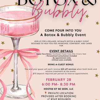 That’s why we’re excited to invite you to a Galentine’s-themed Botox Party hosted by Be Seen LLC—a fun, feel-good way to treat yourself and your glow.
